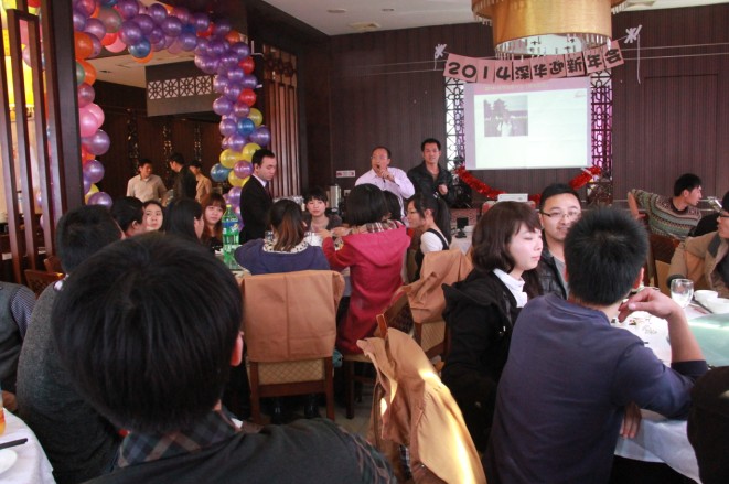 廣州市深華生物技術(shù)有限公司總經(jīng)理張清杰先生首先上臺致新年賀詞,張總回顧了我們深華公司2013年的心路歷程,肯定了2013年各部門的工作也分析了2013年的得失,同時感謝那些還奮斗在前線工地及各研究院校第一線而沒有趕來參加年會的同事們,廣州深華公司的發(fā)展離不開同事們的努力也離不開各位廠家和經(jīng)銷商的支持。