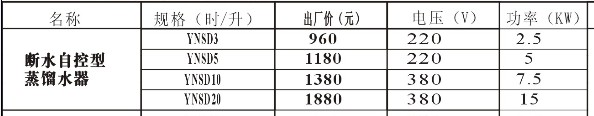 YNSD系列斷水自控型蒸餾水器